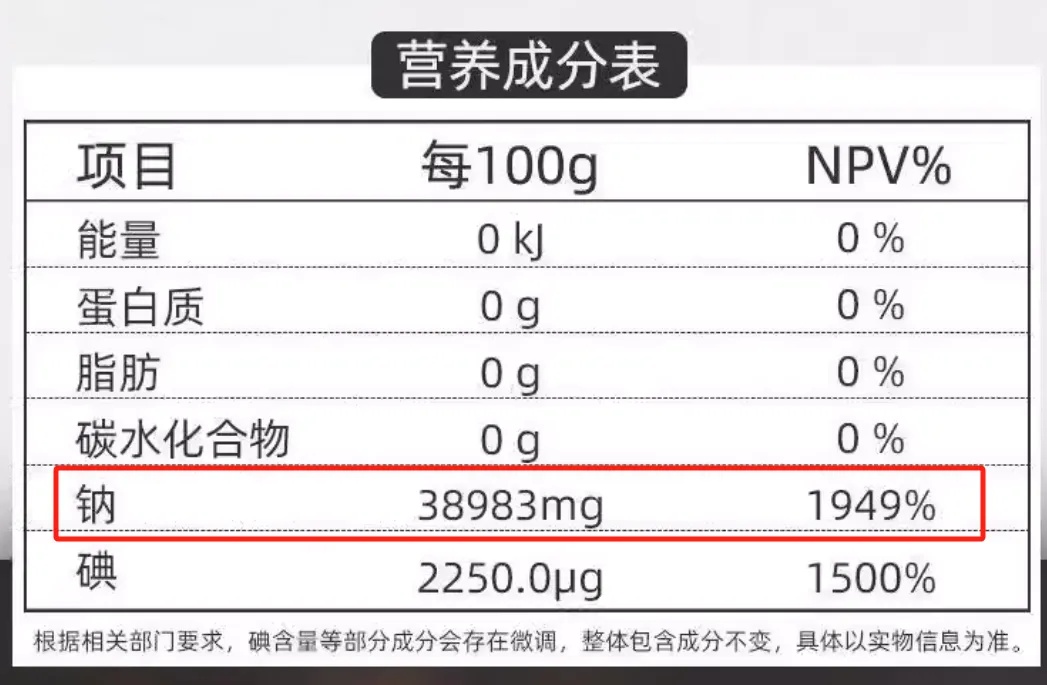 对于我们一般家庭来说,买盐的时候建议关注盐的钠含量和碘含量选购即可。